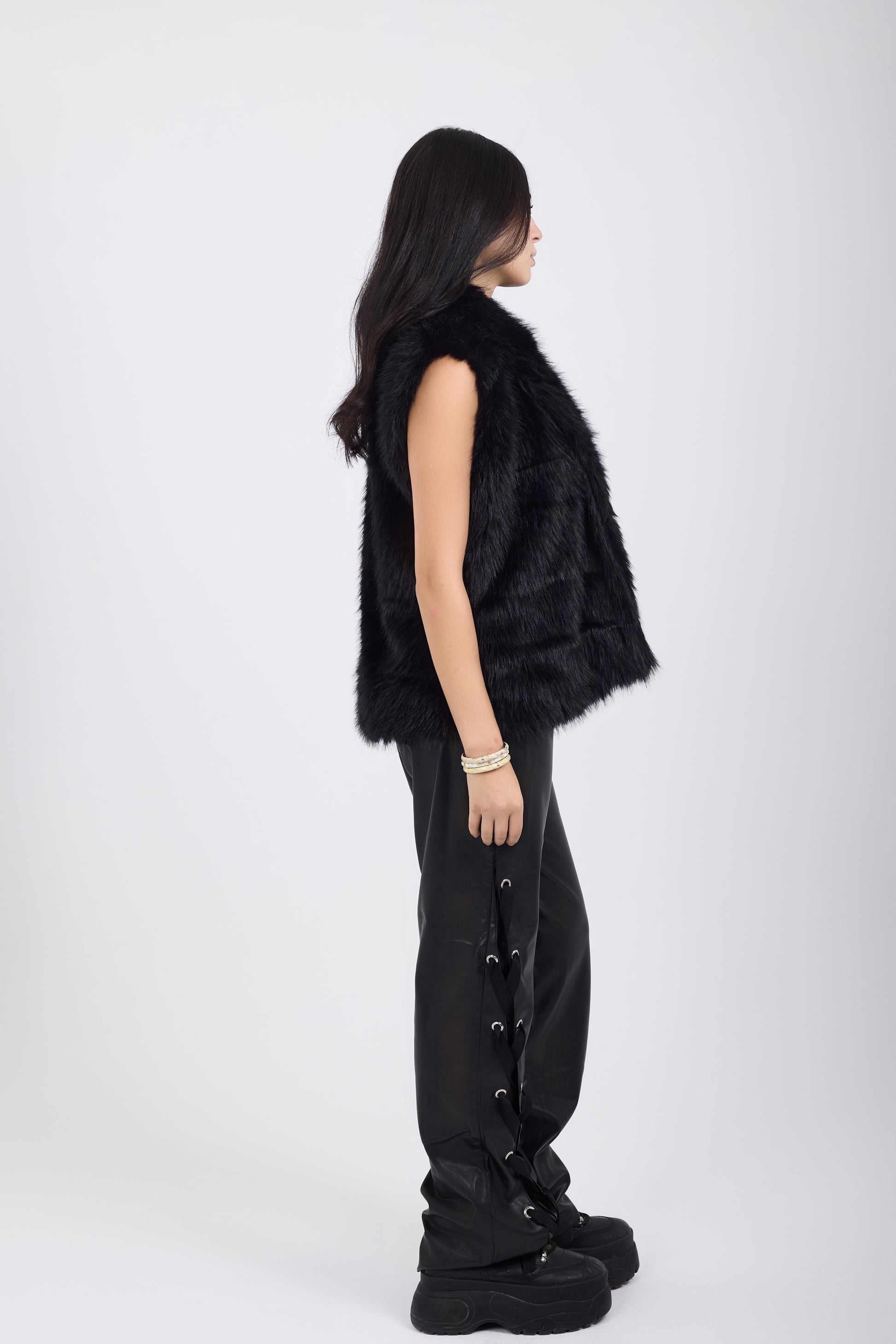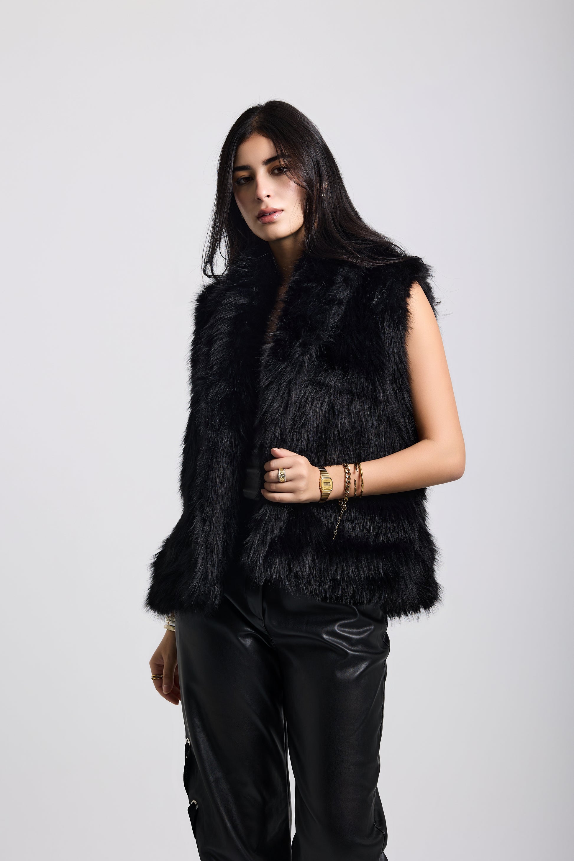 A high-end black fur vest that never goes wrong — Bold yet refined, adds effortless touches, confidence, and luxury to any outfit.